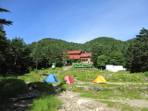 | 登山口から、5時間20分で、聖平小屋に到着です。2260mです。とても綺麗です。トイレ、テンバも山小屋とは思えないくらい整備されています。相当山小屋関係の方々が努力されていると思います。ありがとうございます。ご苦労様です。 |
