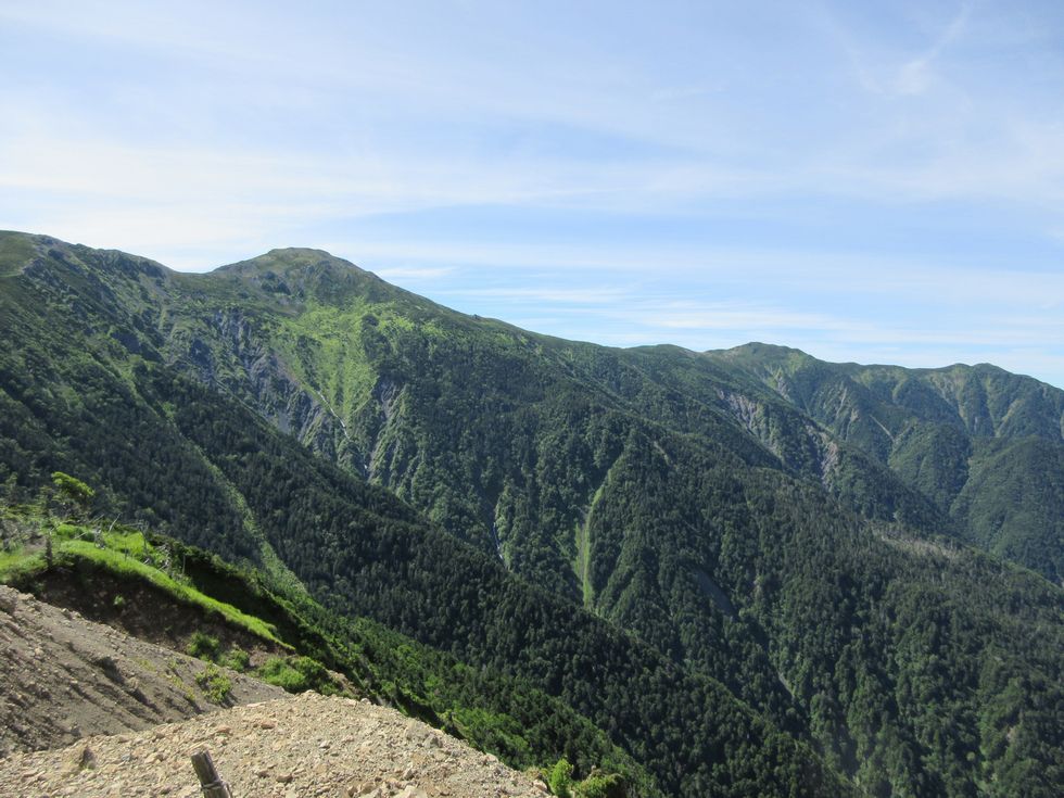 南方面、中央左から、上河内岳、茶臼岳、希望峰。